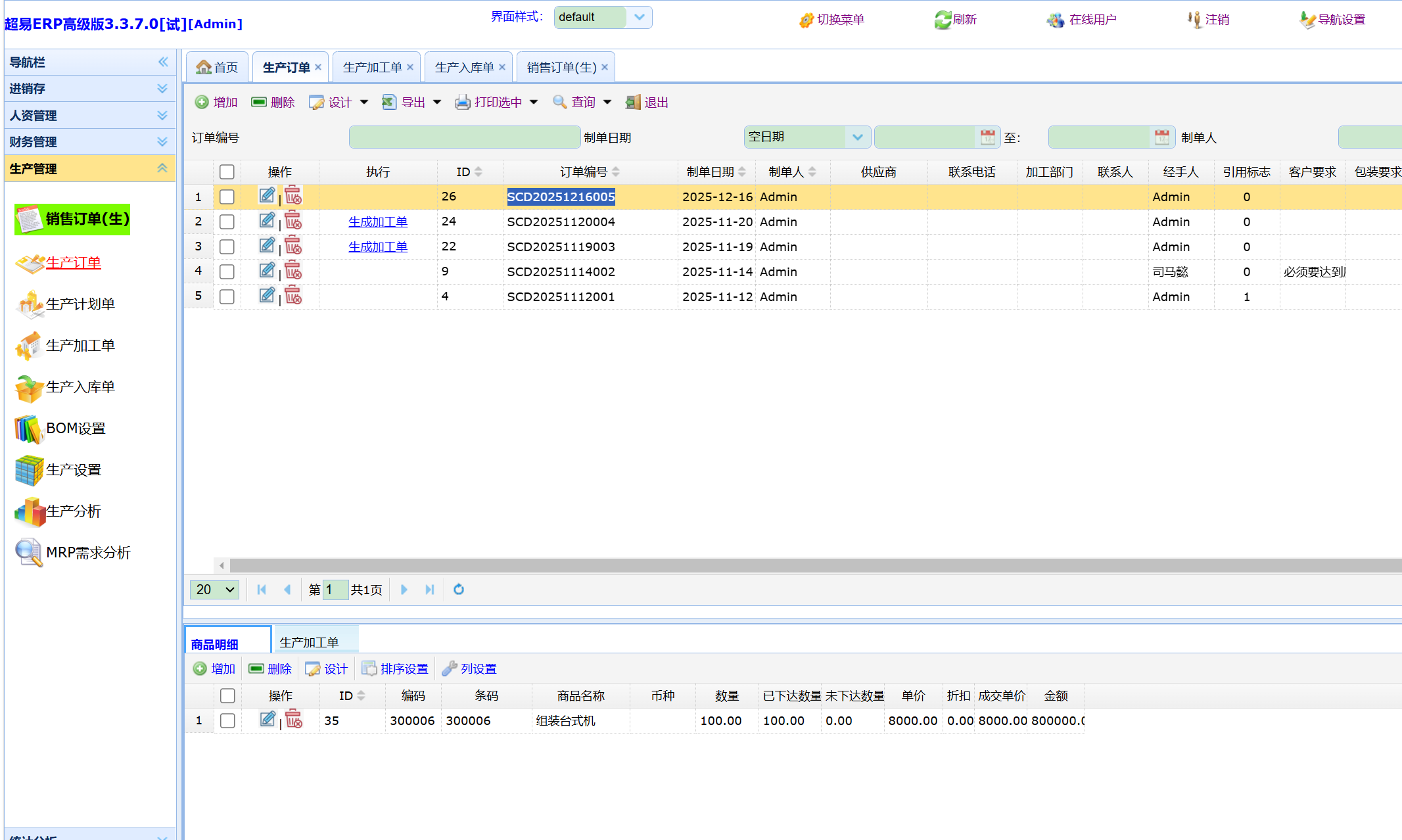 超易ERP管理系统-生产订单