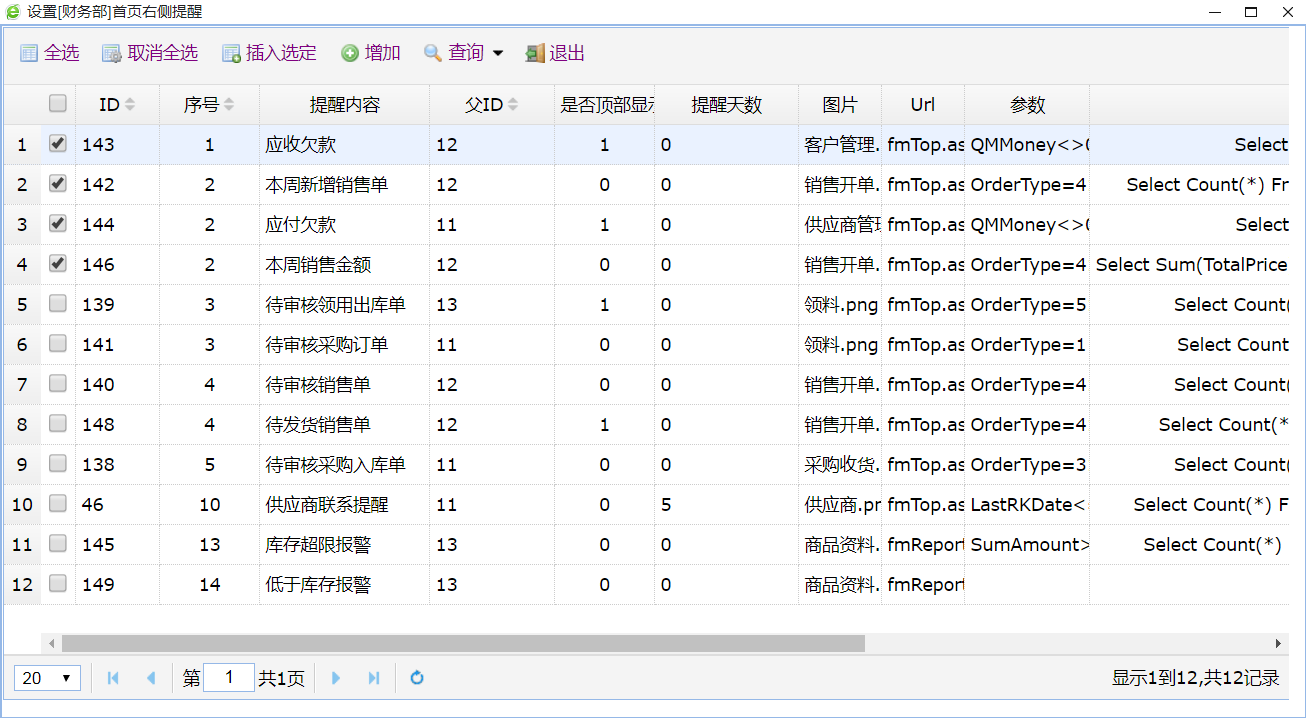 超易ERP管理系统- 首页右侧提醒设置