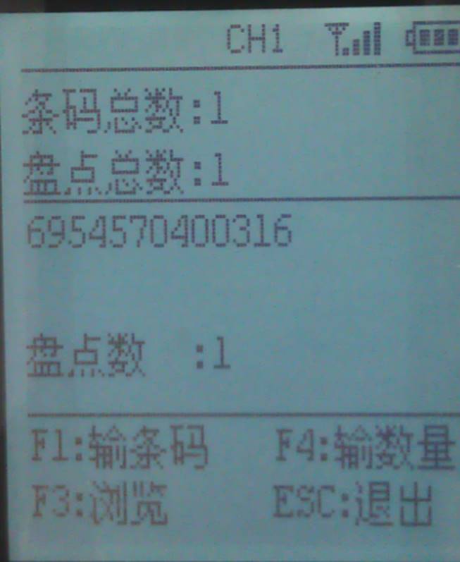 2.     条码采集模式:就是条码扫描后进行保存,扫描后的条码可以在无线盘点机内按F4查询。也可以通过ENT菜单导出所有采集的条码。