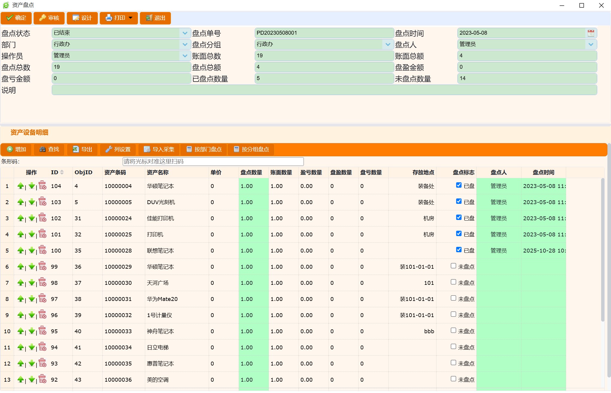 3. 资产盘点:新建盘点单→采集器离线采集→一键导入→自动对账更新。