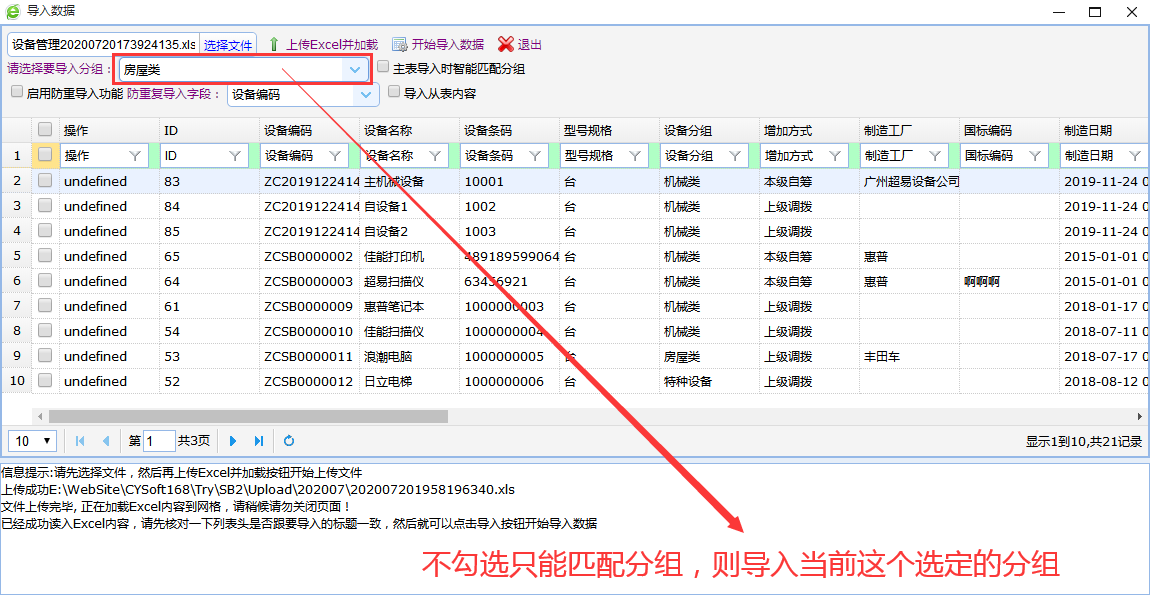 说明:可以勾选导入主表时候只能匹配分组选项,这样会根据所属分组智能匹配分组。也可以不勾选这个选项,直接导入到当前选定分组。