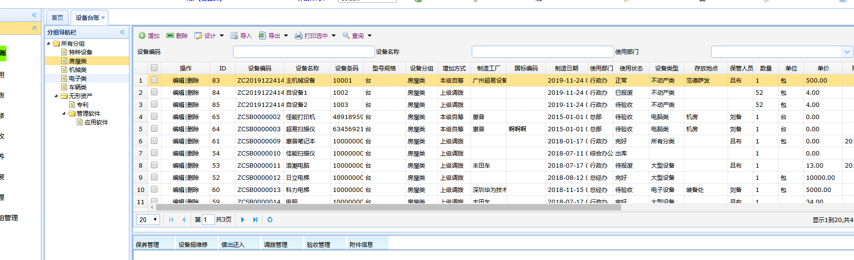 3. 导入主表内容时候,必须有Code对应的字段设备编号。