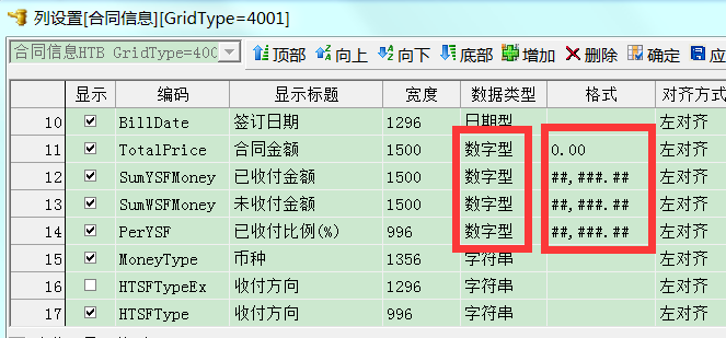 如图所示,可以针对数据类型是【数字型】的项目设置格式。例如格式可以设置0.00,即保留2位小数;格式设置为 ##,###.## ,即千位分隔符。