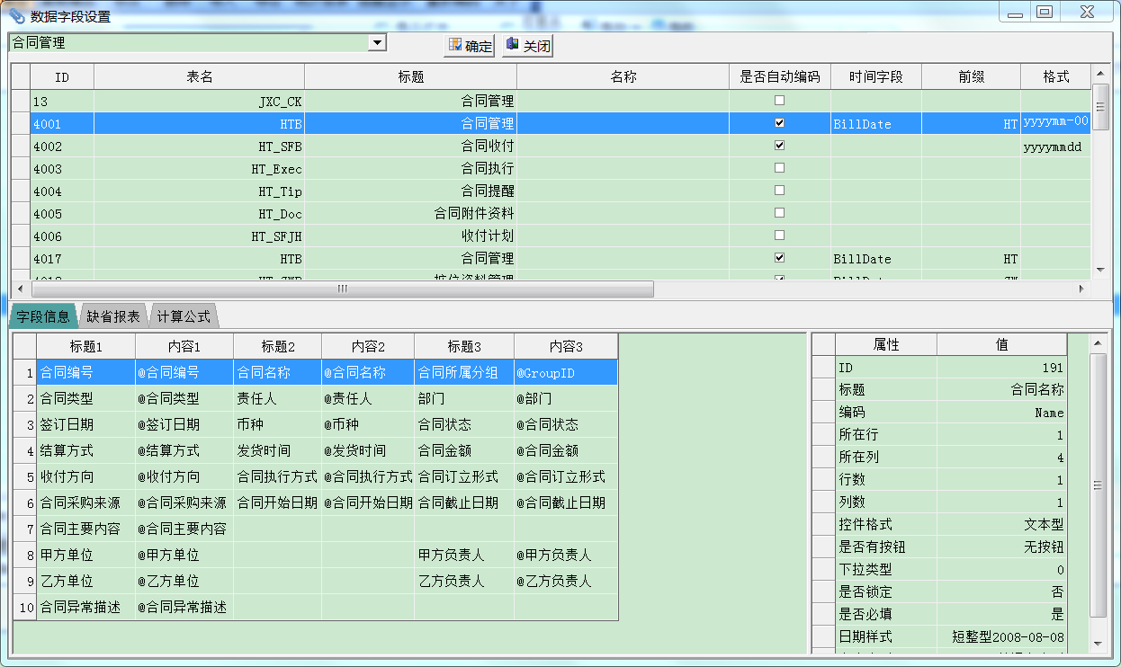 说明:本文以后合同管理为例,实际上,资产、设备、档案、人事、客户、会员等管理系统的自定义个性化设置都适用参考该文档。