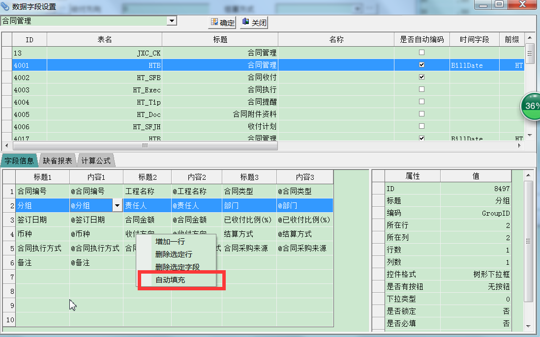 鼠标在字段信息网格,右键弹出菜单,选择自动填充功能,这个一般是在列设置设置完毕之后,利用这个功能快速化的生成新的录入界面表单。