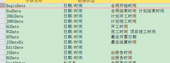 在合同表中,以下字段: