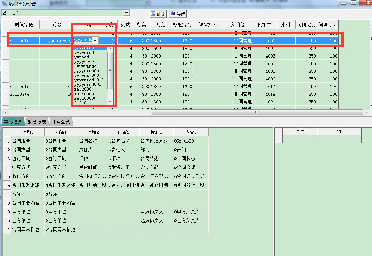 说明:如果所有的合同以某一个前缀开头,例如HT文本开头,则前缀设置为【HT】,如果每种分组的合同都不同,则设置为[DeptCode]。然后为每个分组设置开头。