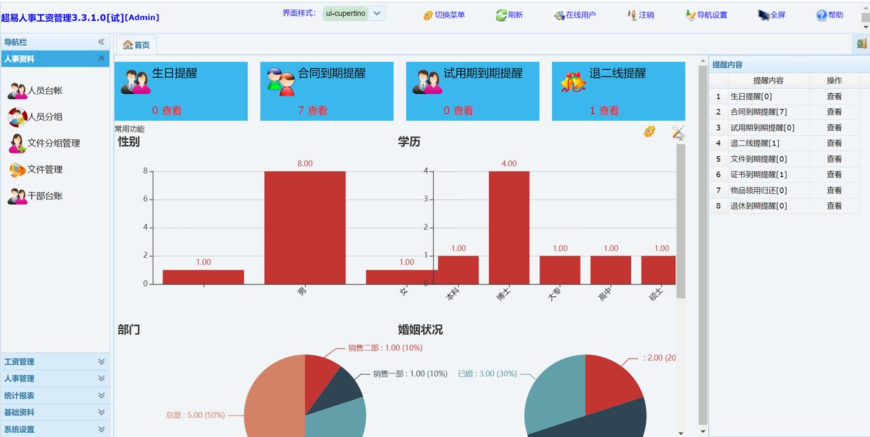 7.在【基础质料】-【常规设置】、【人事设置】、【人员设置】中,把增加人事时的下拉选项设置好相应的下拉内容。