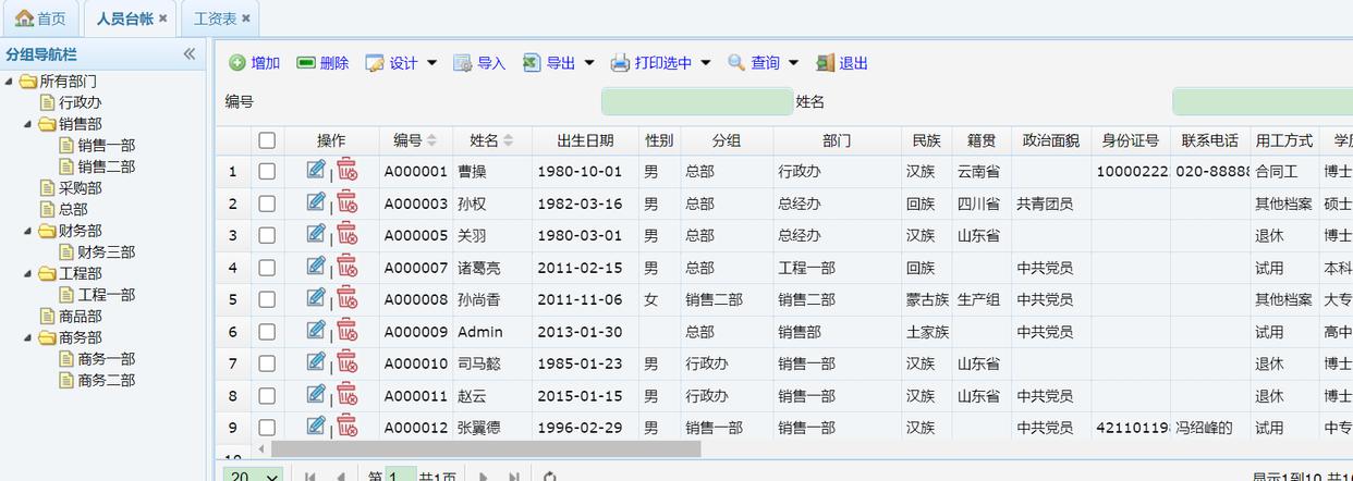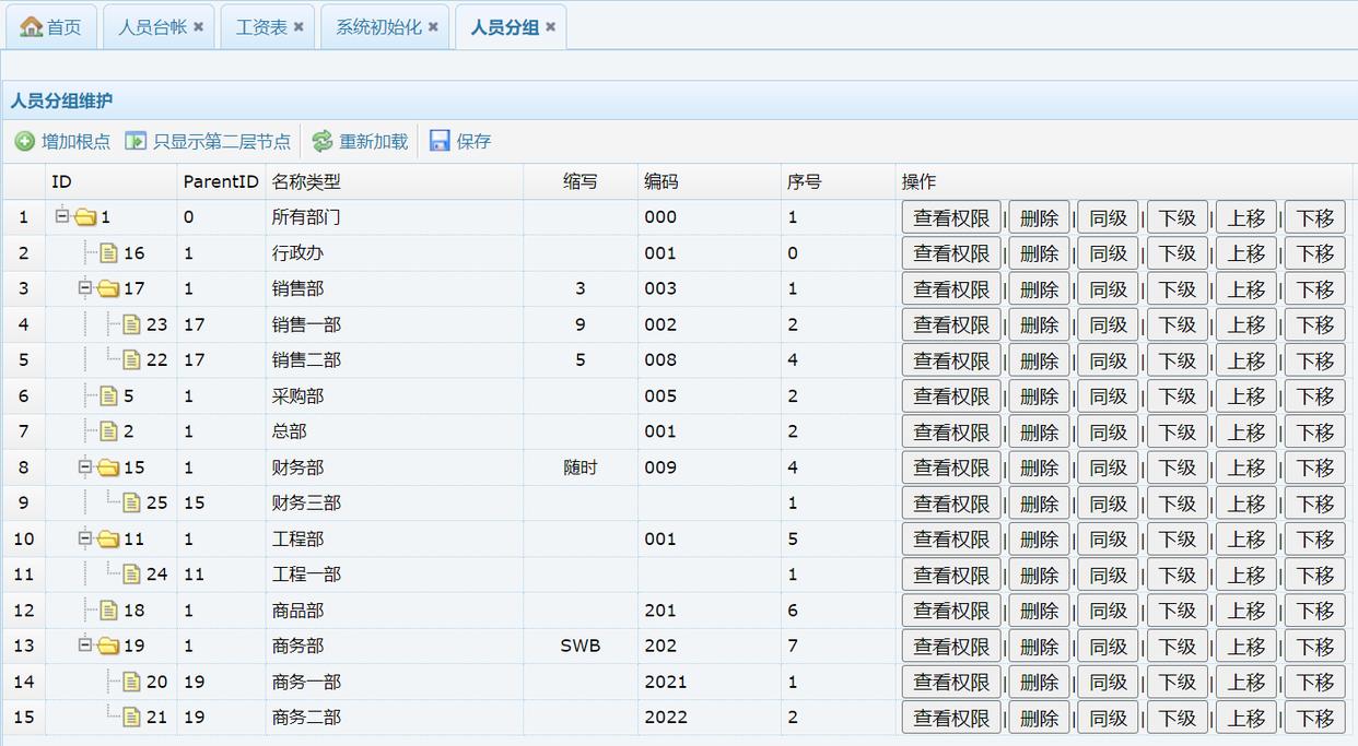 4.在【人事资料】-【人员分组设置】中,设置人事分组,以及给不同的操作员授予不同的查看权限。