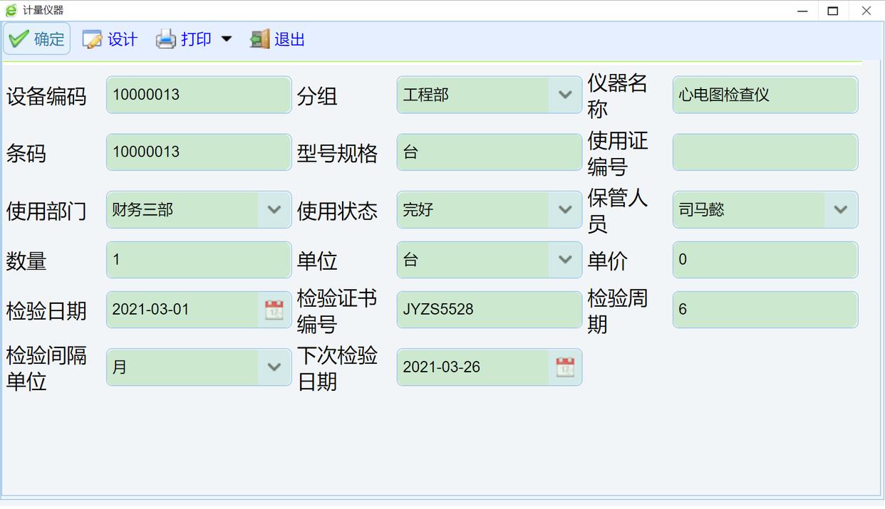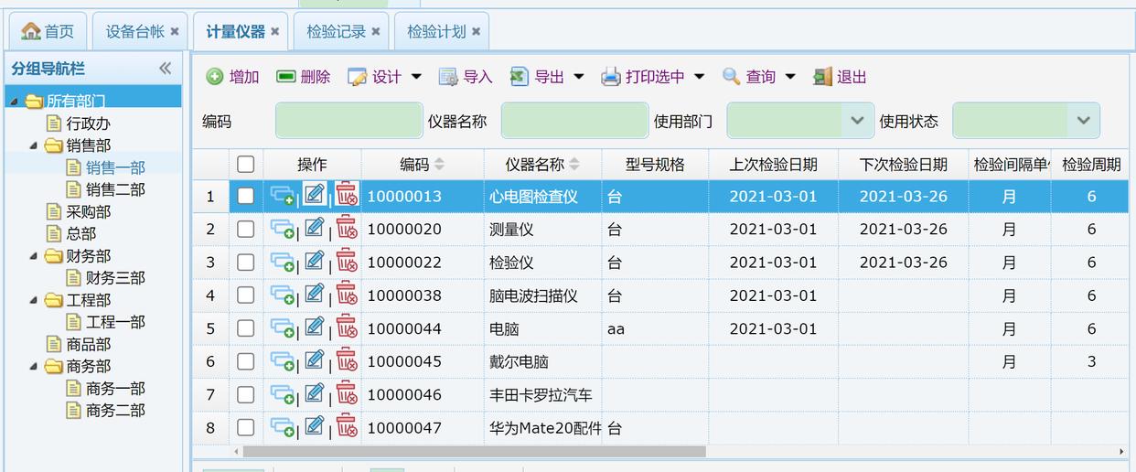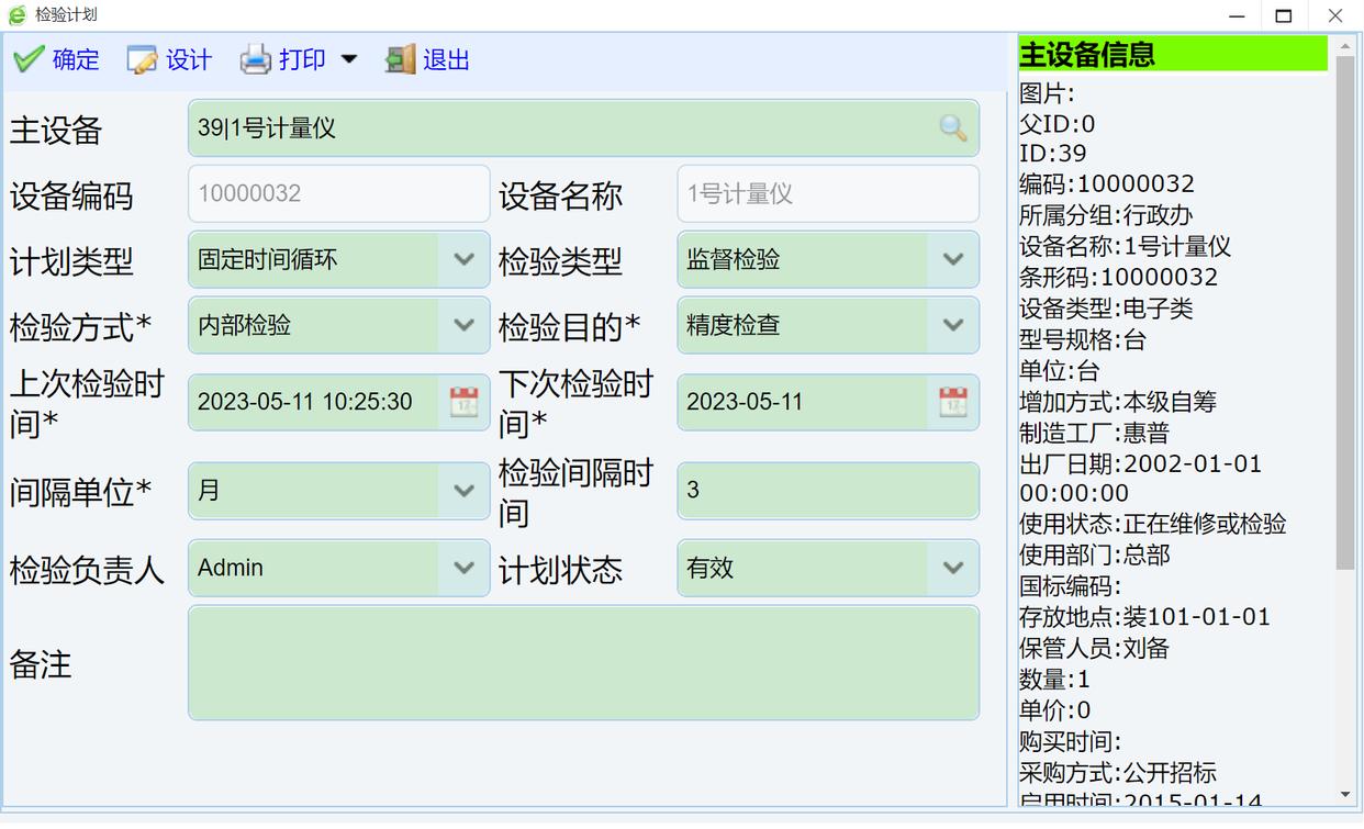 点击编辑按钮编辑,注意填写检验间隔单位,检验周期等参数。