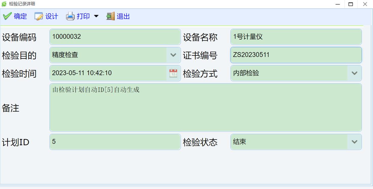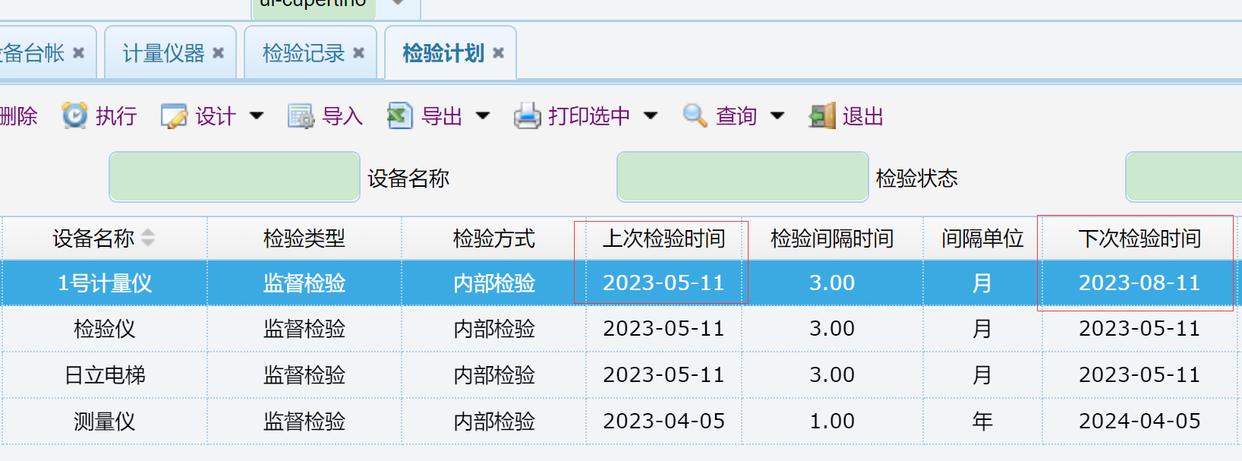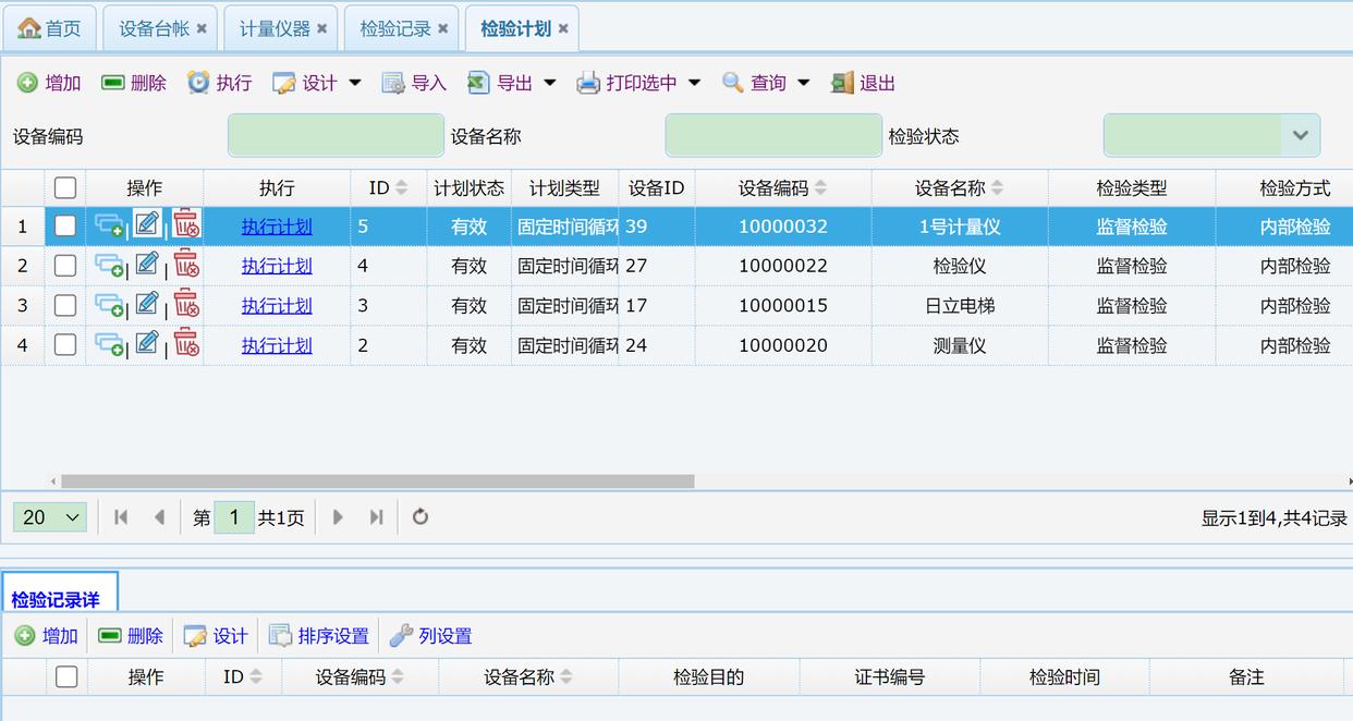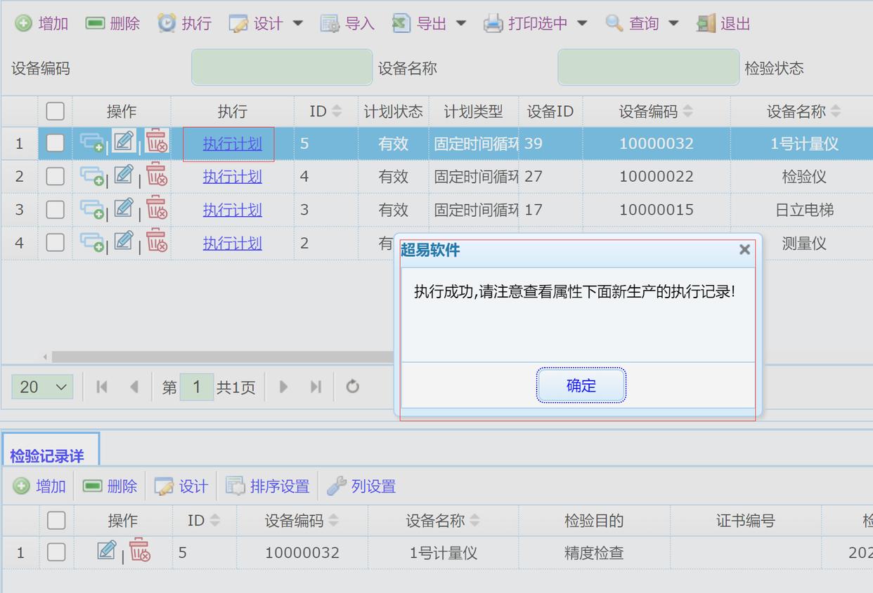 执行计划,点击执行计划后会产生一条检验校准记录。