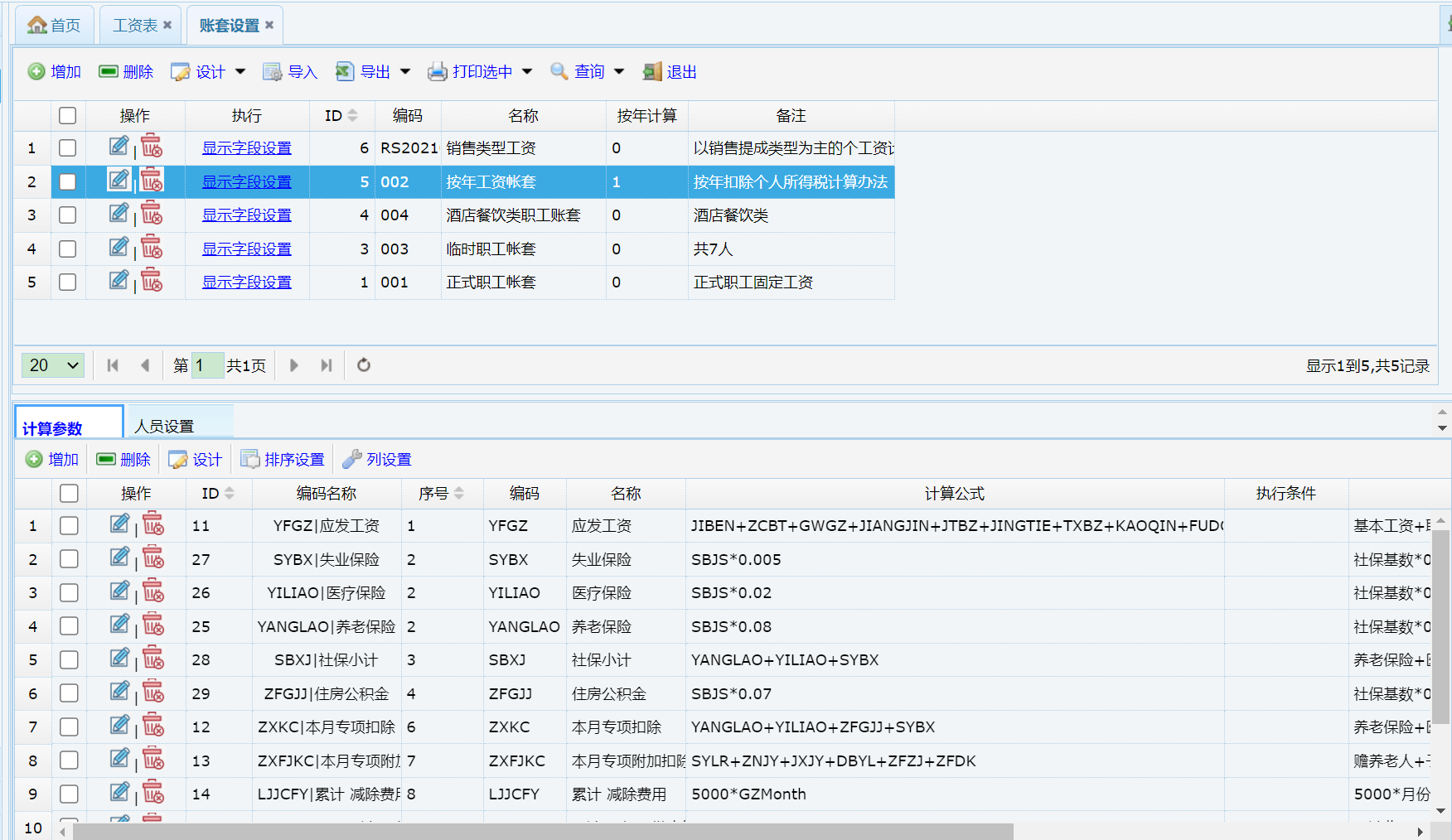 新建工资表,然后按选定账套加载,输入基本工资等信息,重算即可