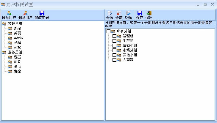 1、 分组权限设置:在人事工资管理软件的人事管理部分,不同的部门有不同的分组,如果想设置不能查看其他部分人事资料,只能查看本部门人事资料。右键单击分组选择查看权限设置,会出现下面的界面: