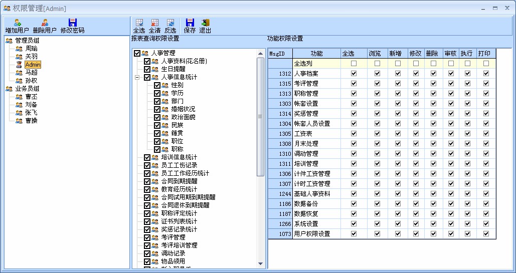 综上所述:各用户的各项权限已设置,如没有给的权限强行进行操作也是无效的,系统会自动弹出提示。