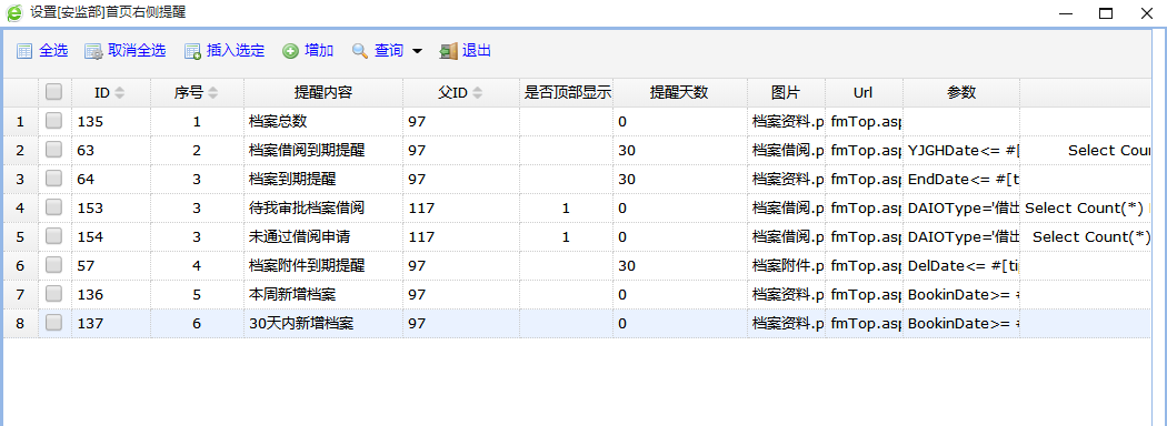 这里主要针对某个角色组设置首页右边提醒显示内容。