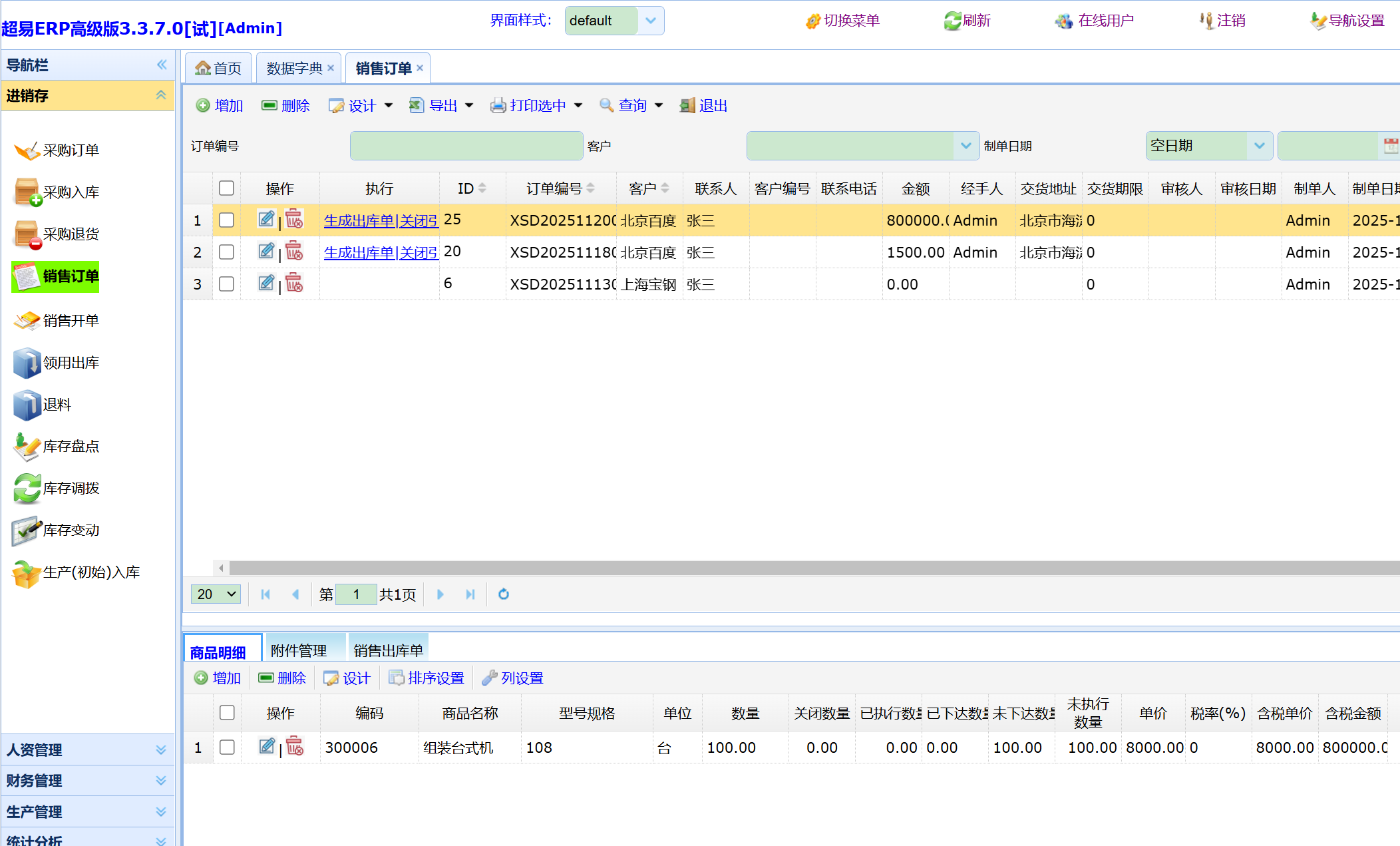 在ERP管理系统中,销售订单是一个非常重要的功能模块,可以详细记录客户需要采购哪些商品,打印好销售订单,发给客户进行确认处理。