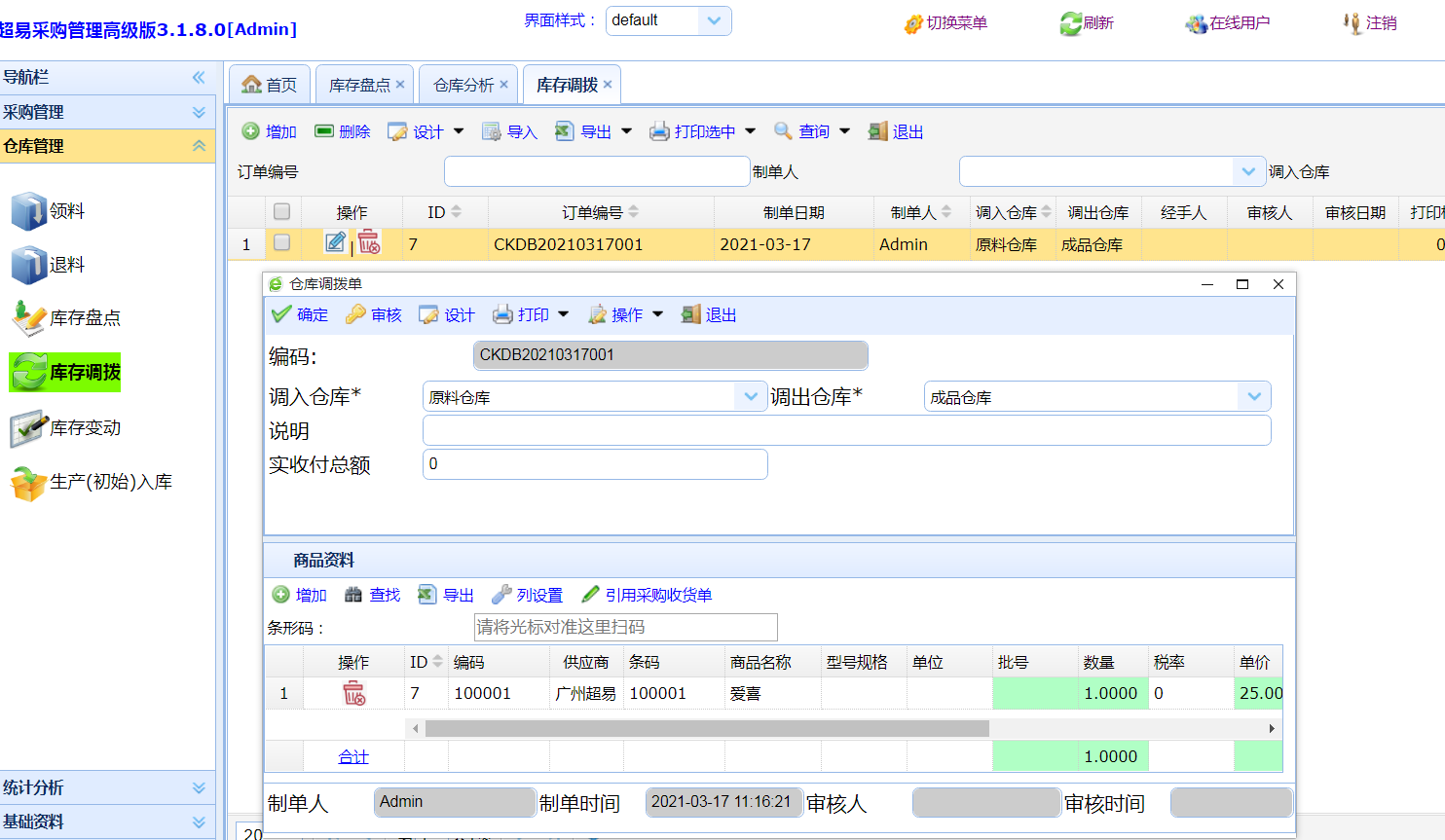 超易ERP管理系统-库存调拨