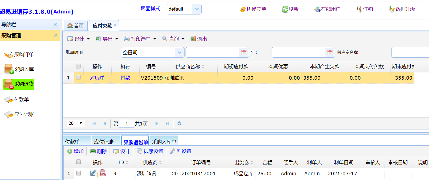 主要是方便跟供应商进行对账,对于财务要求严格的公司来说,可以以【应付管理】功能点为主要依据,进行应付操作。