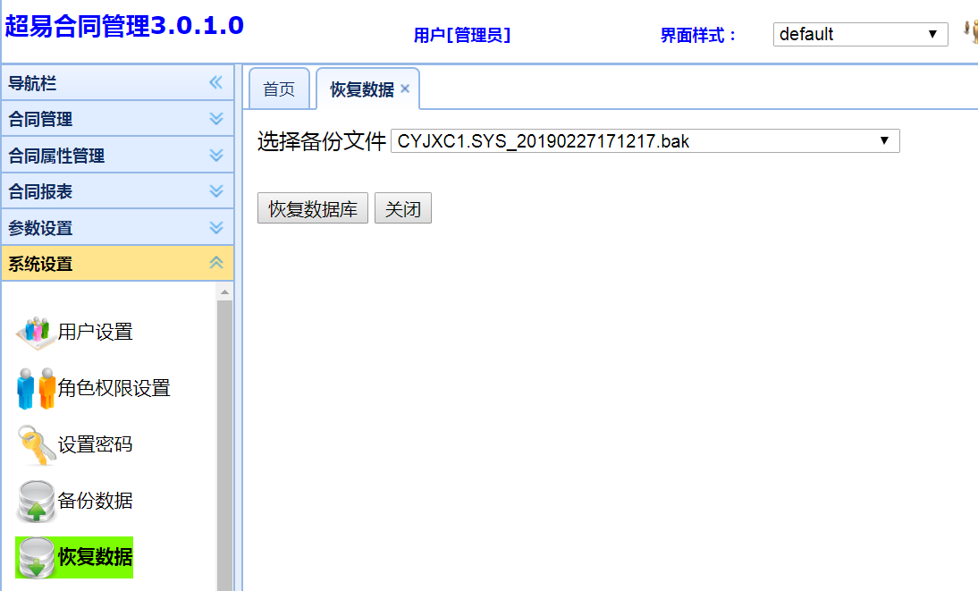 超易ERP管理系统- 恢复数据