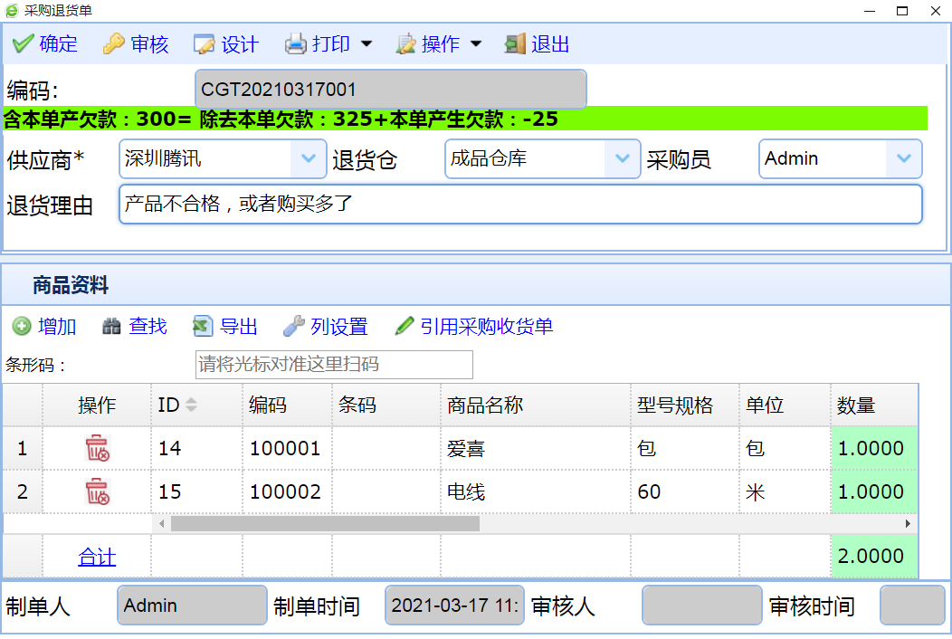 2.1.4采购退货单