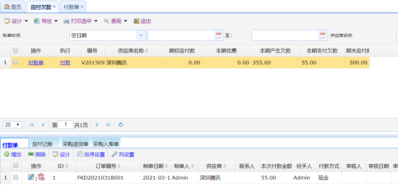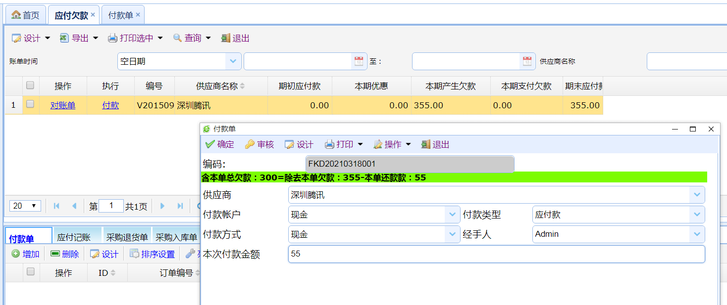 应付欠款管理