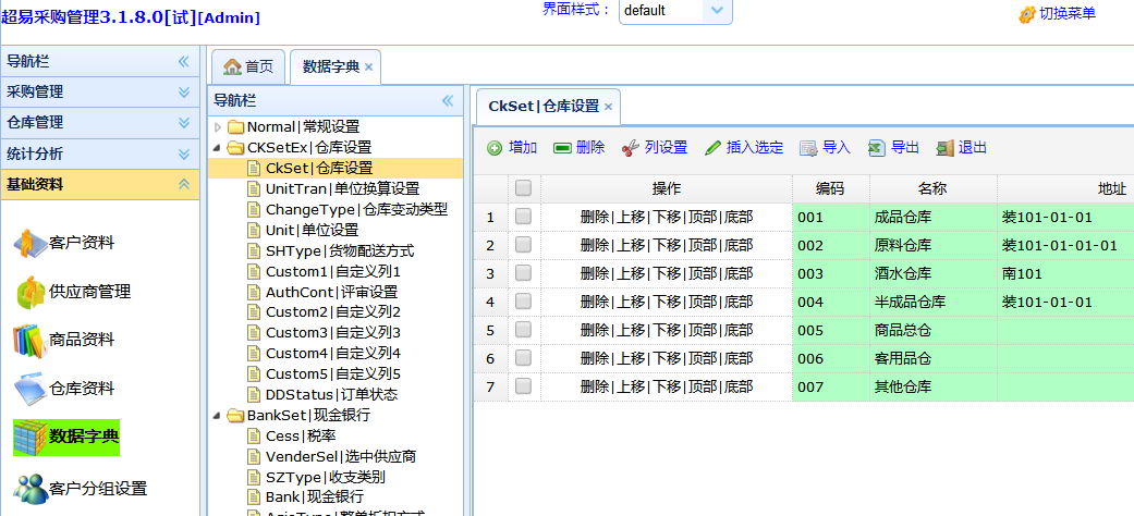 采购管理系统- 仓库资料