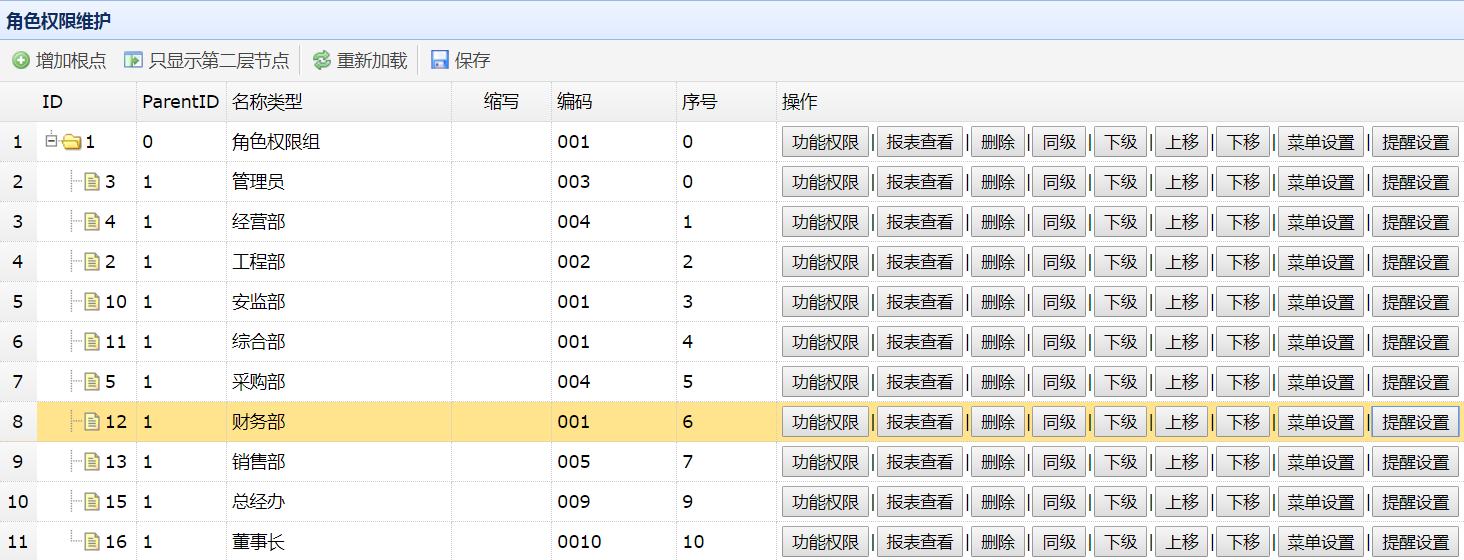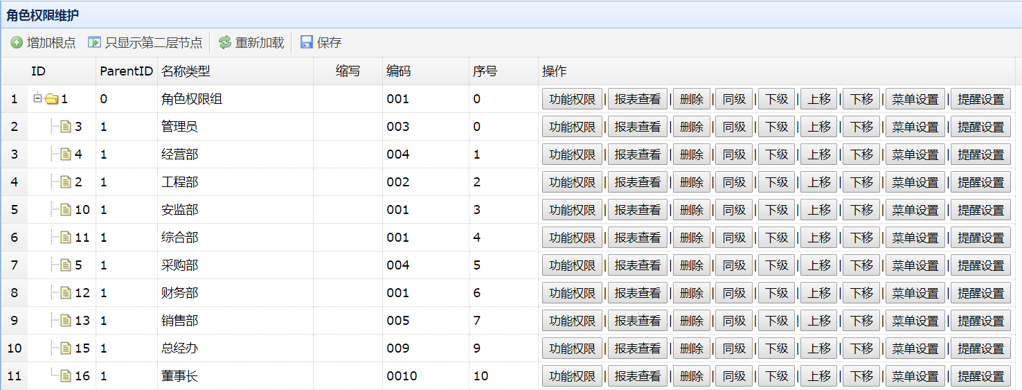 一般权限分组就不要设置太多子级别了,建议2级节点即可。
