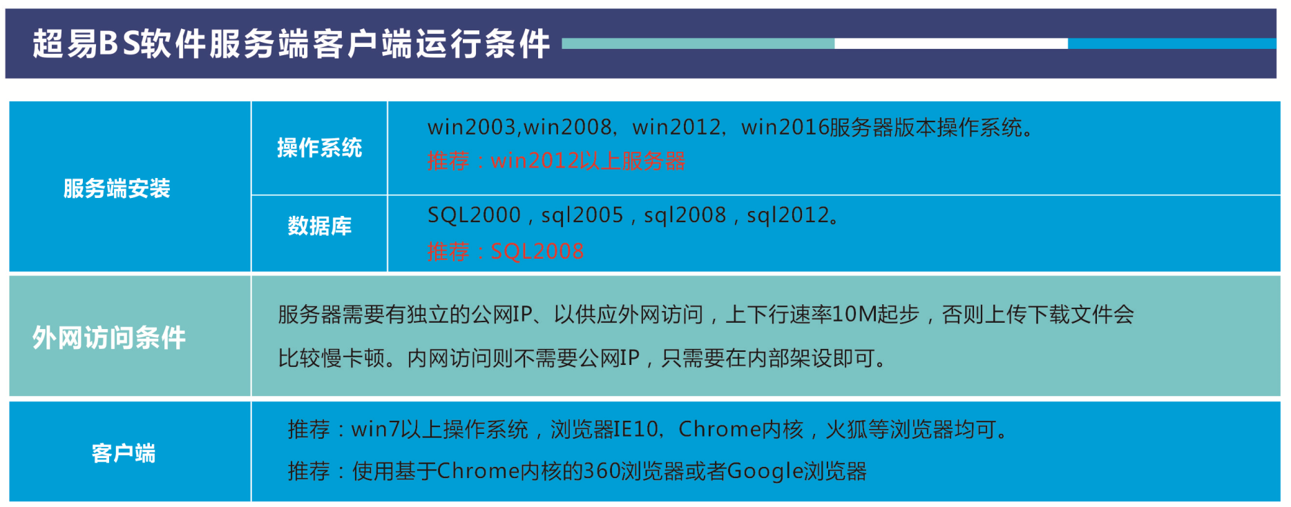 推荐配置:intel I5以上,内存8G以上,系统盘Intel SSD256G以上,存储盘用 SSD硬盘或者专业服务器硬盘 500G以上。
