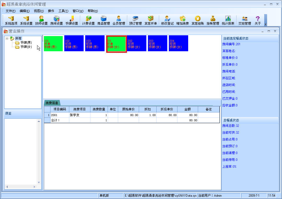 超易桑拿洗浴管理系统(绿色版)