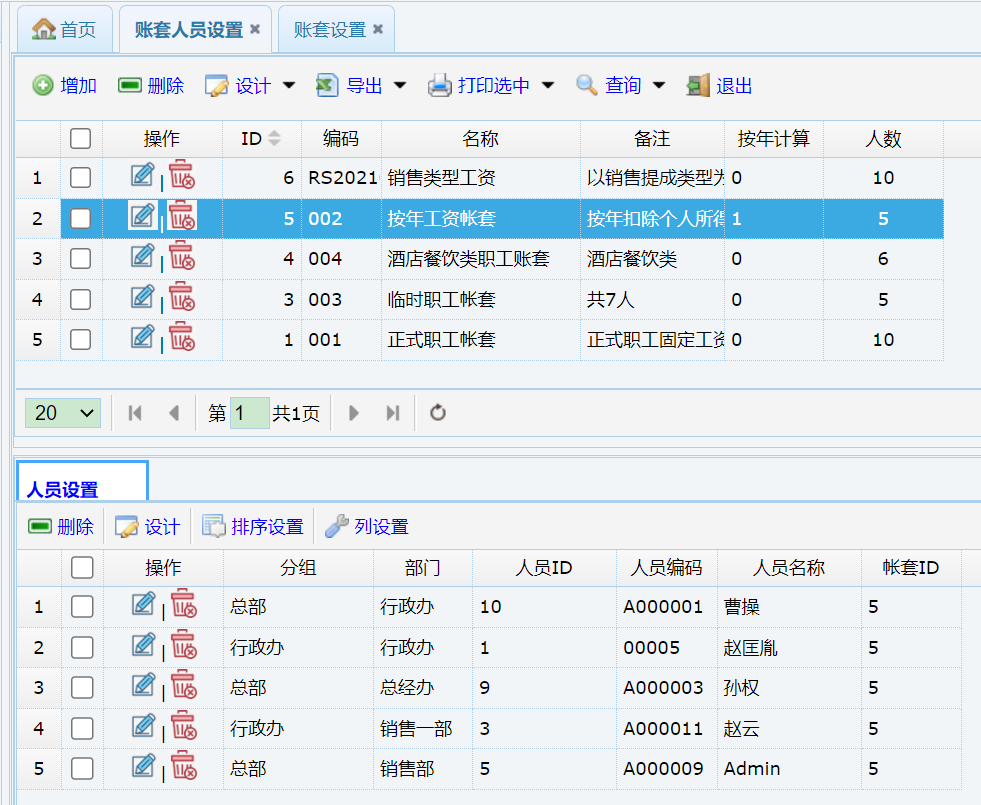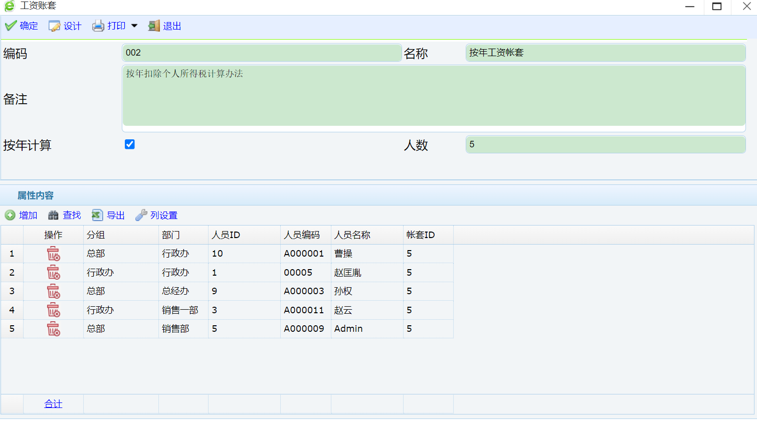 打开编辑界面,选择适合这个按年工资账套的核算人员