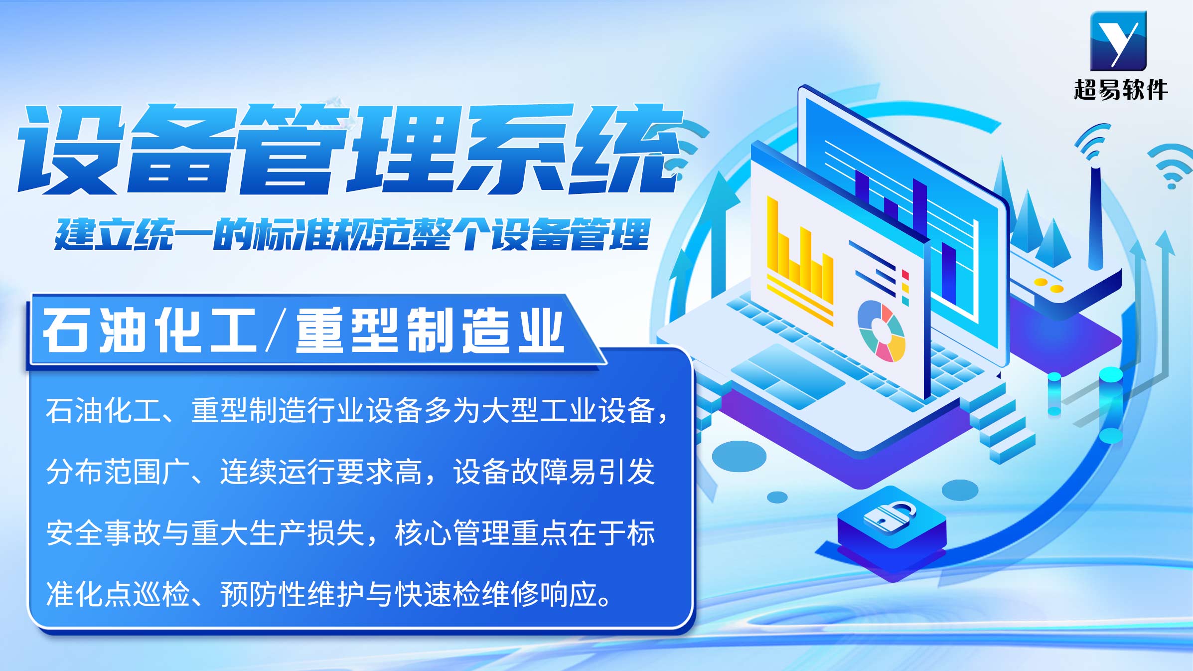 补充说明:超易3个官方版本核心定位(均支持PC端、手机端双端访问):① 专业版:满足中小企业基础设备管理需求,包含核心设备管理功能模块;② 工业版:满足制造型企业全面设备管理需求,包含专业版全部功能及进阶模块,仪器仪表功能可适配医疗行业;③ 检维修版本:满足高要求设备维护管理需求,包含工业版全部功能及高级点巡检模块,针对石油化工、工厂设备点巡检要求强的场景,适配性最优。