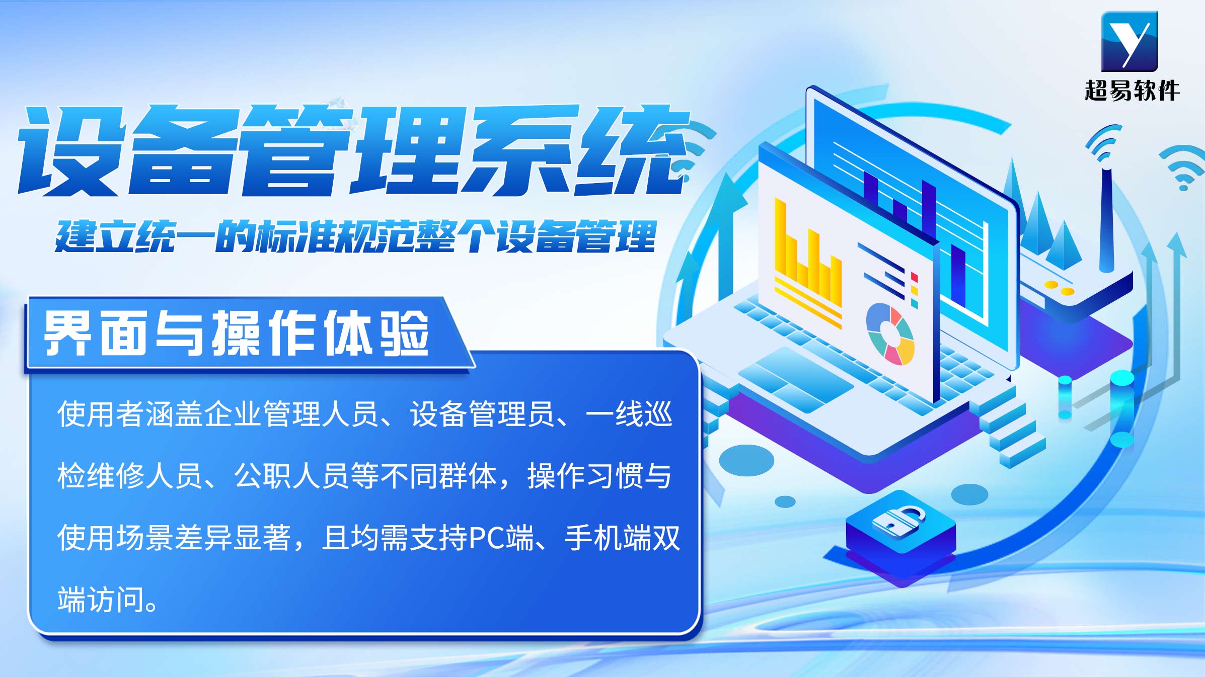 推荐产品:超易设备管理系统(全版本,专业版/工业版/检维修版本,均支持双端访问,界面与操作体验优化到位)、冠唐科技设备管理系统、易点易动移动端优化版。这类产品在界面设计与操作体验上表现优异,多风格界面适配不同人群,双端操作流畅,操作流程简洁高效,能有效提升各类使用者的使用效率。