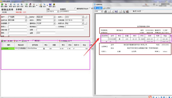 左边是销售出库单录入界面,右边是报表打印预览,结合起来看就不难发现主表和从表的区别。