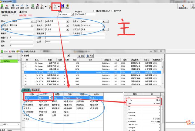 3:字段编码要对应;区分开了主从报表,那么下一步就是要确定需要字段的编码,比如主表里客户,出货仓,经手人的这些编码以及从表里单价,数量,单位这些字段的编码又是如何去查询?