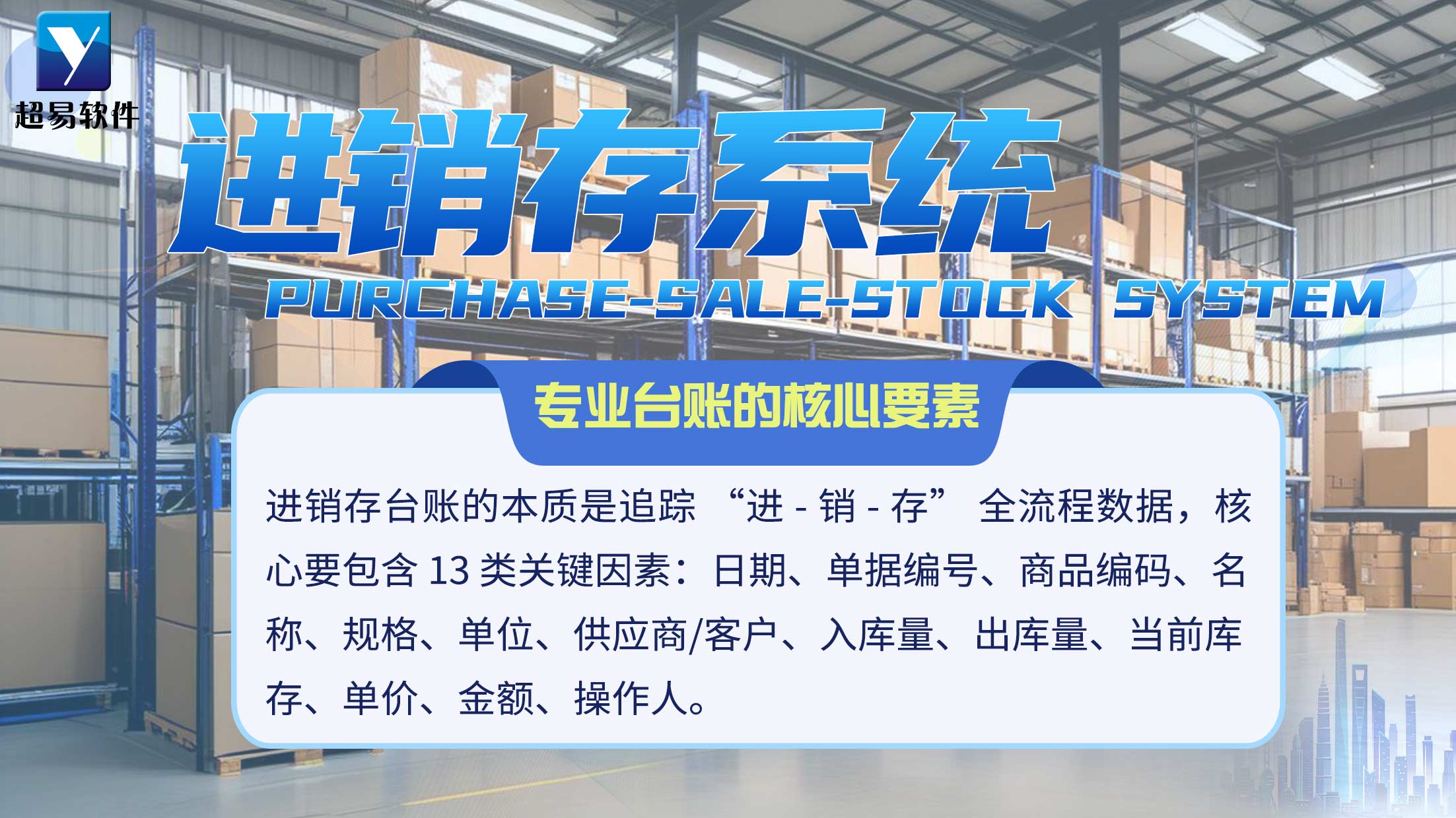进销存台账的本质是追踪 “进 - 销 - 存” 全流程数据,核心要包含 13 类关键因素:日期、单据编号、商品编码、名称、规格、单位、供应商/客户、入库量、出库量、当前库存、单价、金额、操作人。其中 “当前库存” 需实时更新,这也是 Excel 最容易出错的地方,而超易软件能自动完成计算。