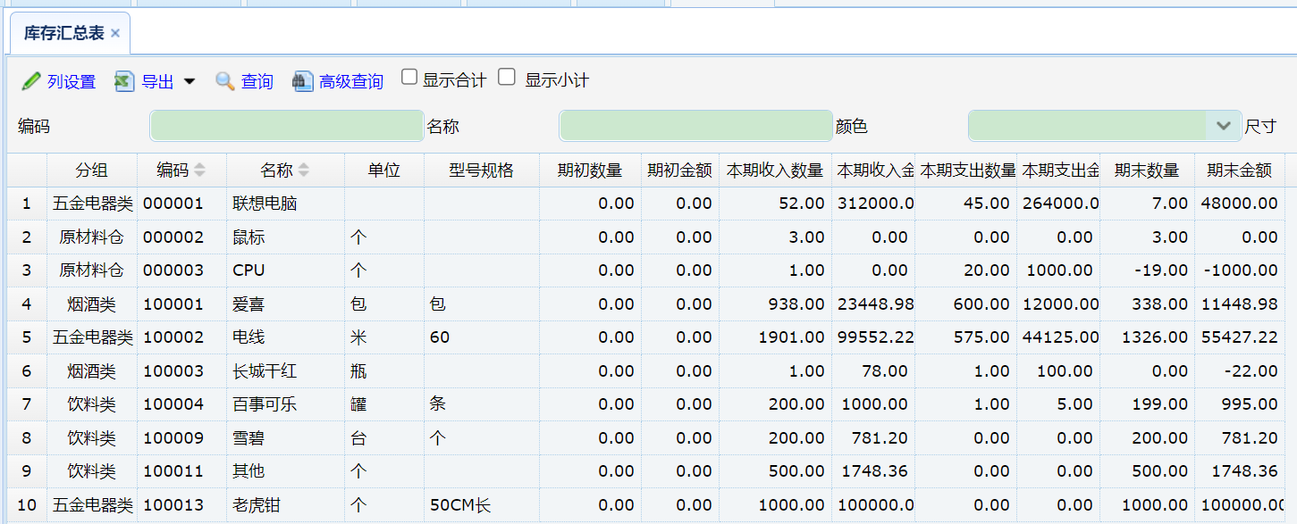 仓库管理:领料、退料、库存盘点、仓库调拨、借入、借出、借入还出、借出还入,库存汇总表、库存明细帐、库存报警、采购人员采购汇总表、明细表,供货方资料管理、供货方供货汇总、明细报表;