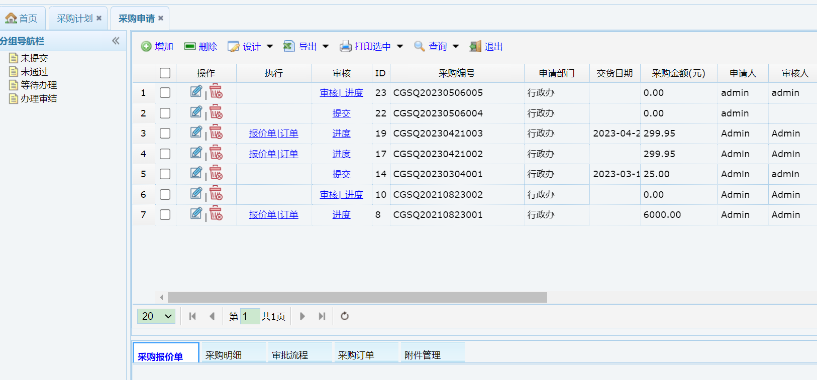 采购申请单:各部门或者个人根据需要填写采购申请单。
