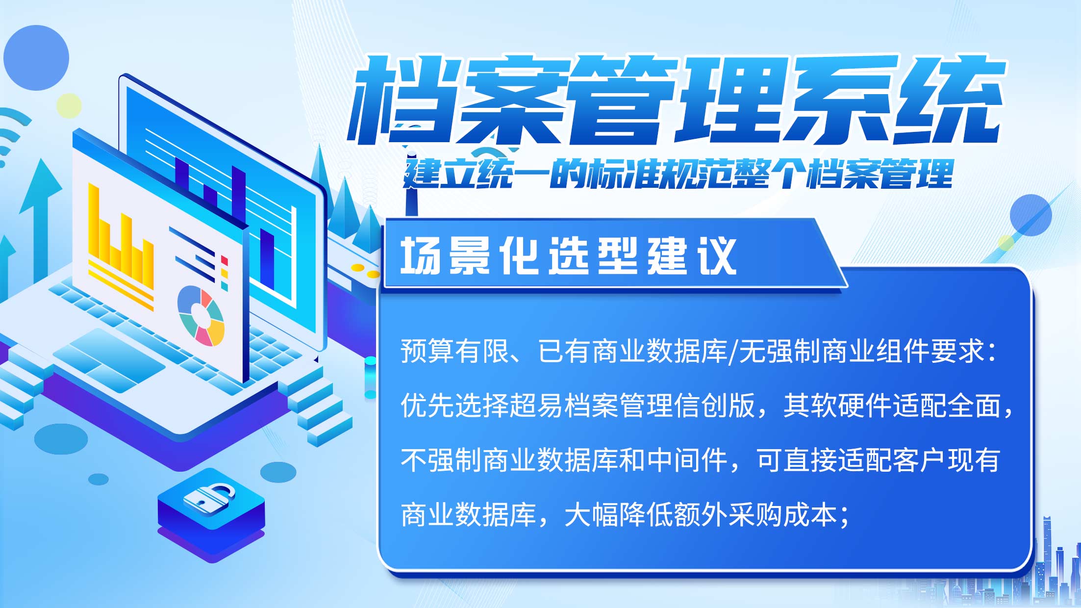 预算有限、已有商业数据库/无强制商业组件要求:优先选择超易档案管理信创版,其软硬件适配全面,不强制商业数据库和中间件,可直接适配客户现有商业数据库,大幅降低额外采购成本;同时易用性强、内网部署便捷,功能覆盖日常档案管理需求,具备完善的信创资质和技术支持,完美匹配中小企业、信创化资金预算有限的政企部门,尤其适合内部人事档案、办公档案等不对外场景的管理,此类内部管理场景无需涉密资质,选择基础信创适配、高性价比产品即可。